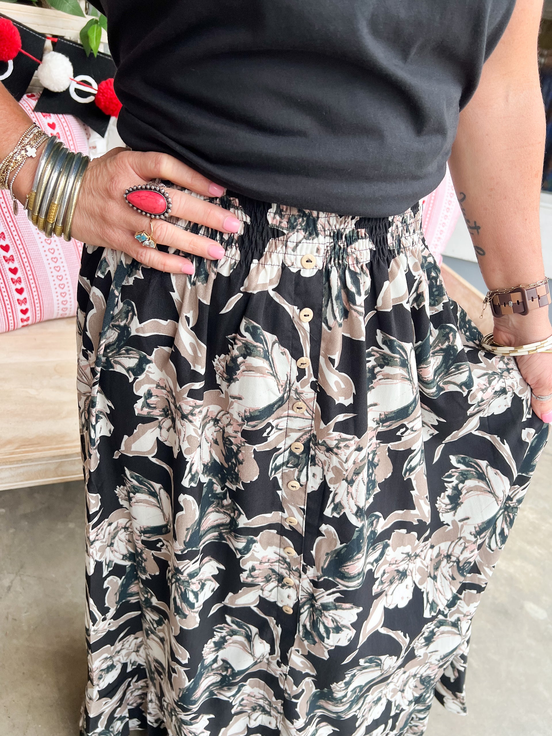 Black Floral Maxi Skirt - Final Sale