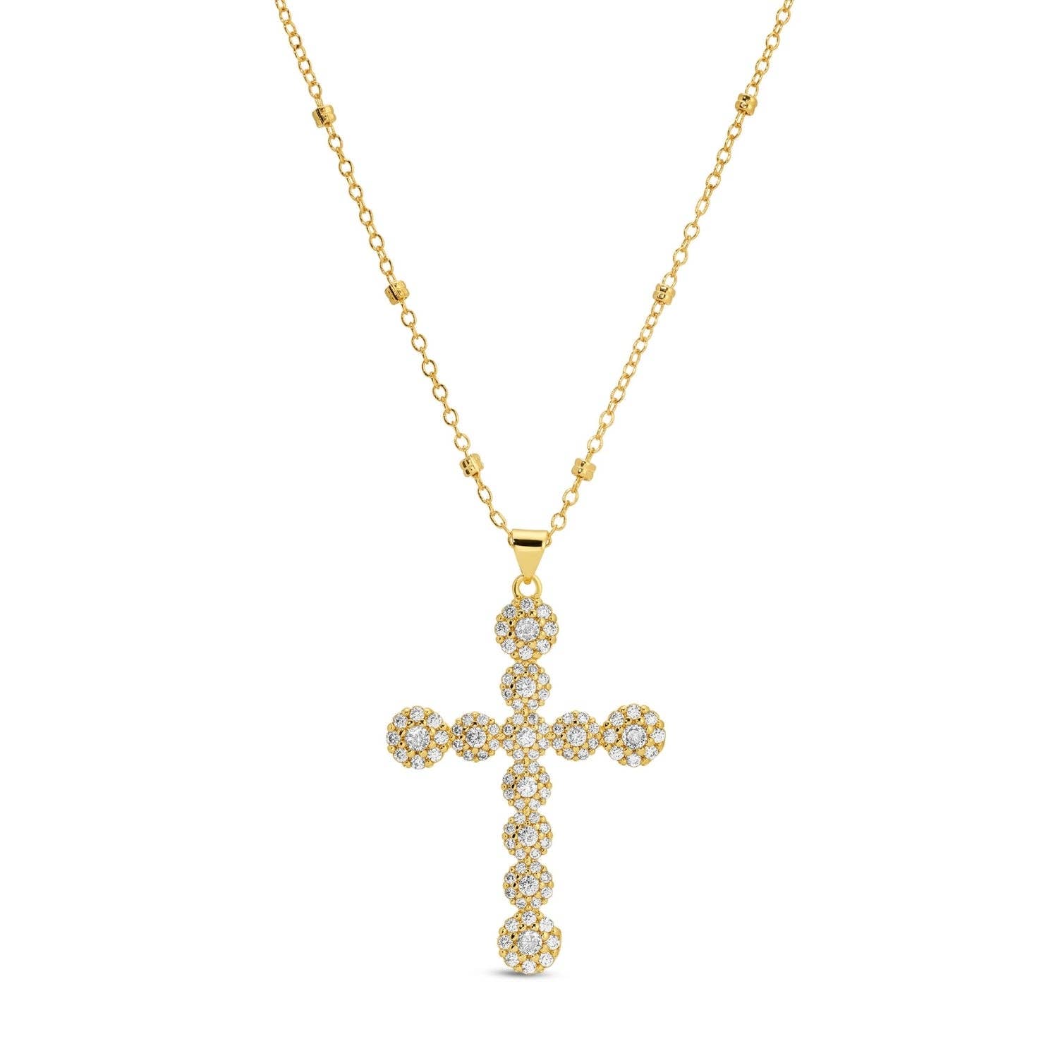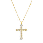 Long necklace with large vintage vibe cz cross 30" Necklace .1.2" x 1.7" Pendant 18k Gold Plated Brass Base Cubic Zirconia
