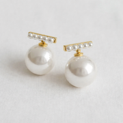To wear, gently pull out the T-shaped row of pearls to access the hidden post underneath. Insert the concealed stud through the ear, then position the T-bar pearl piece back into place to complete the look.
