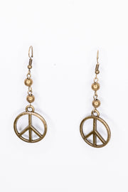 These bronze fishhook earrings feature a peace sign charm. These super simple, lightweight earrings can go with everything!