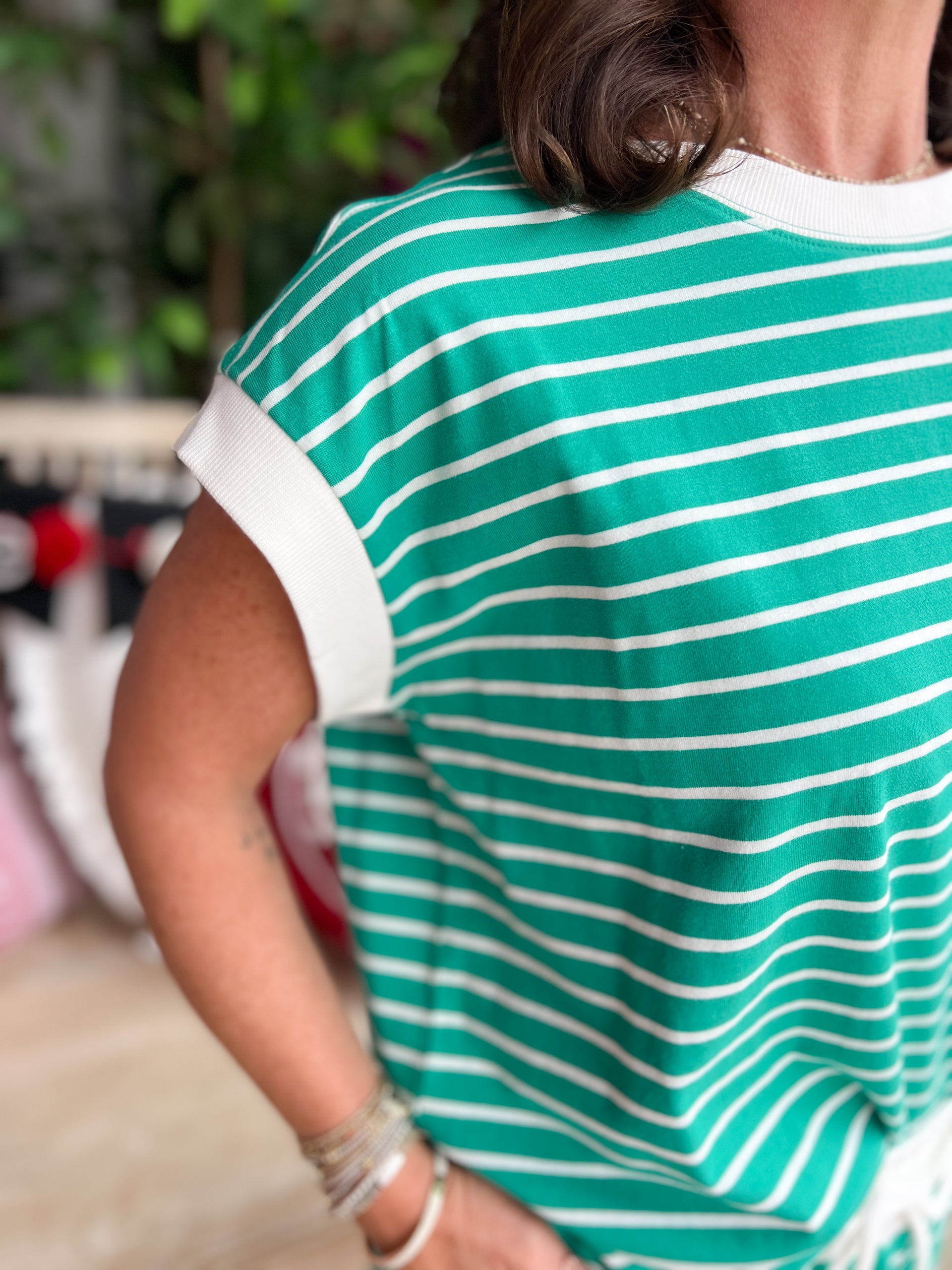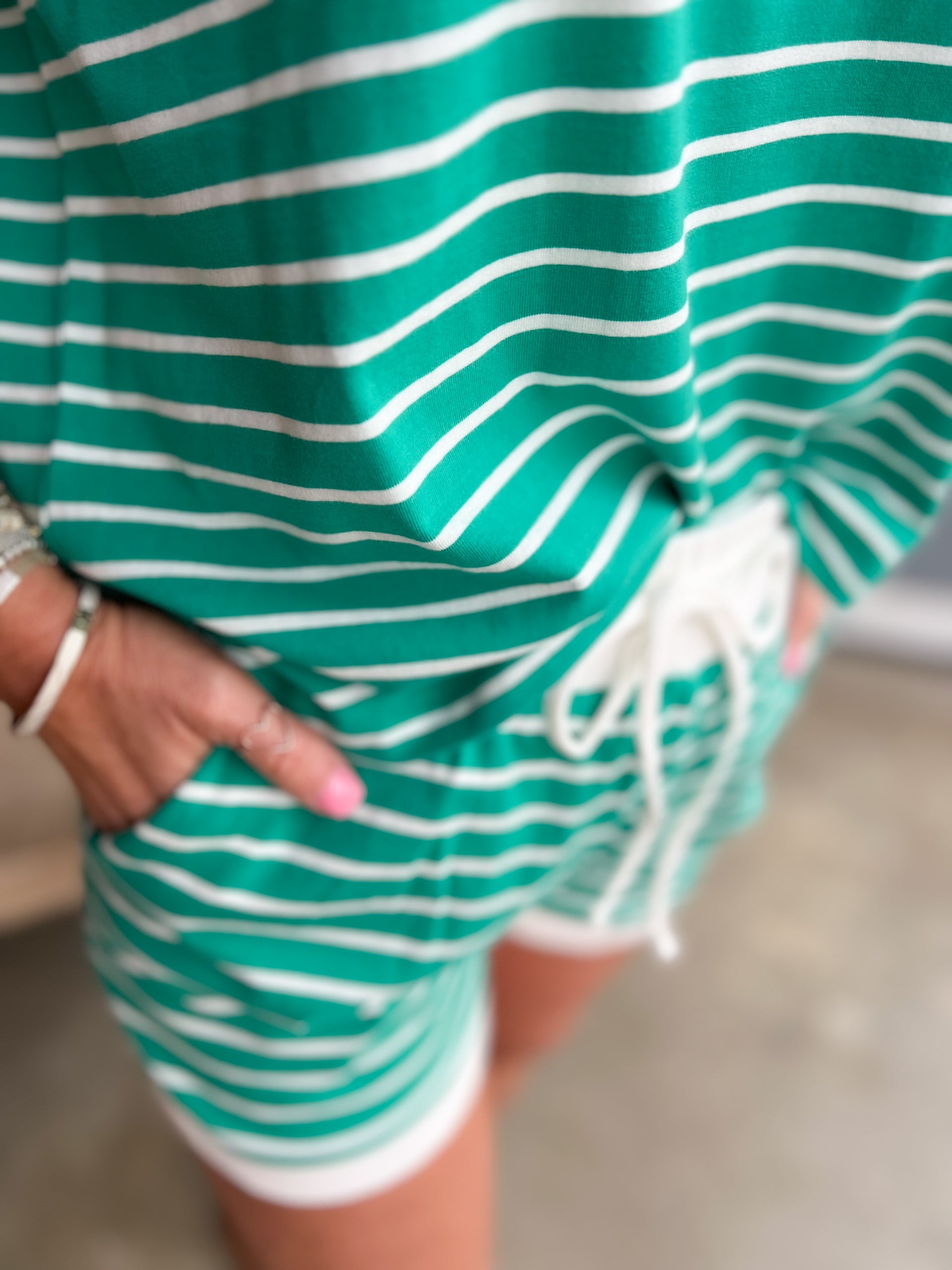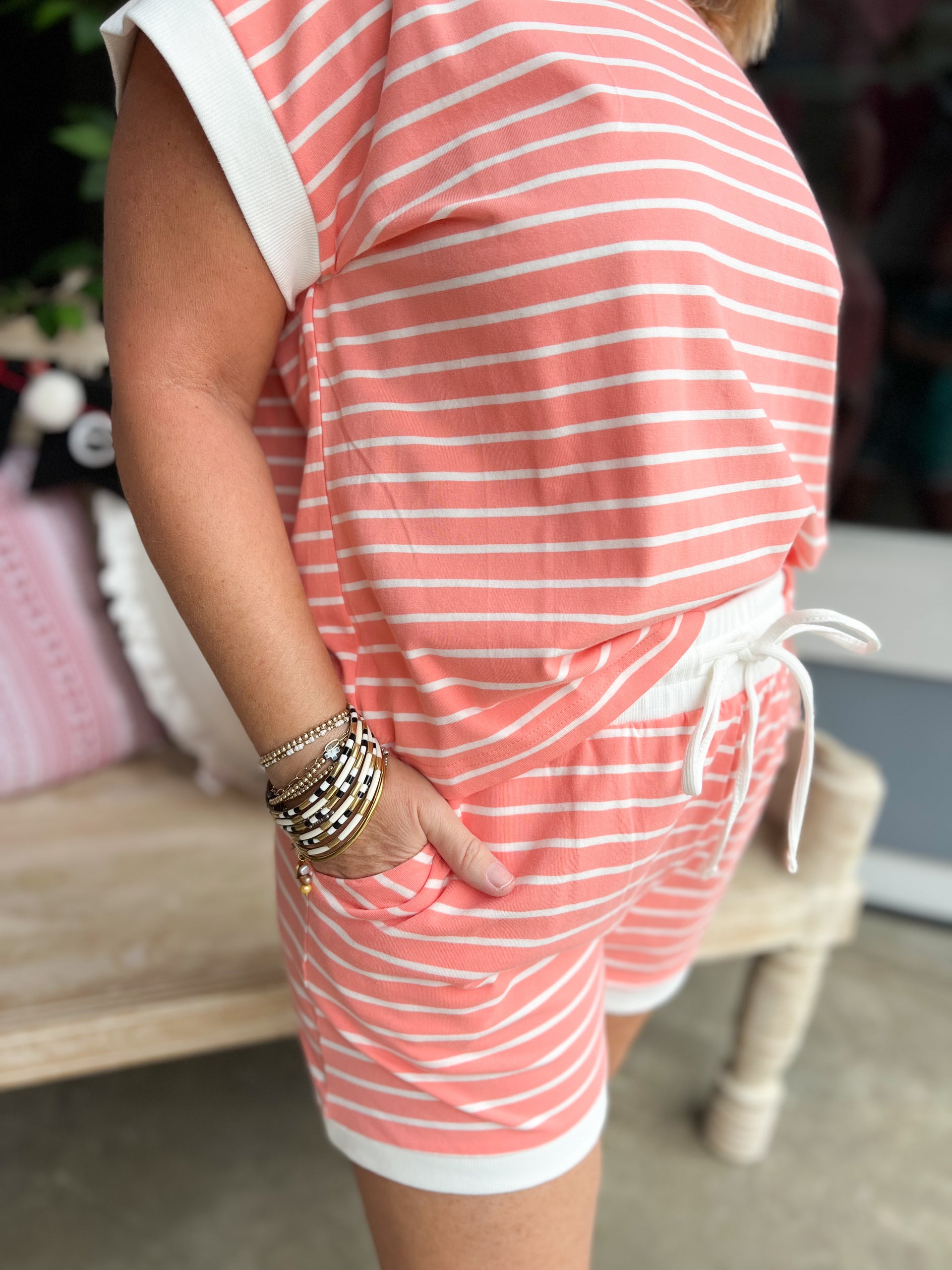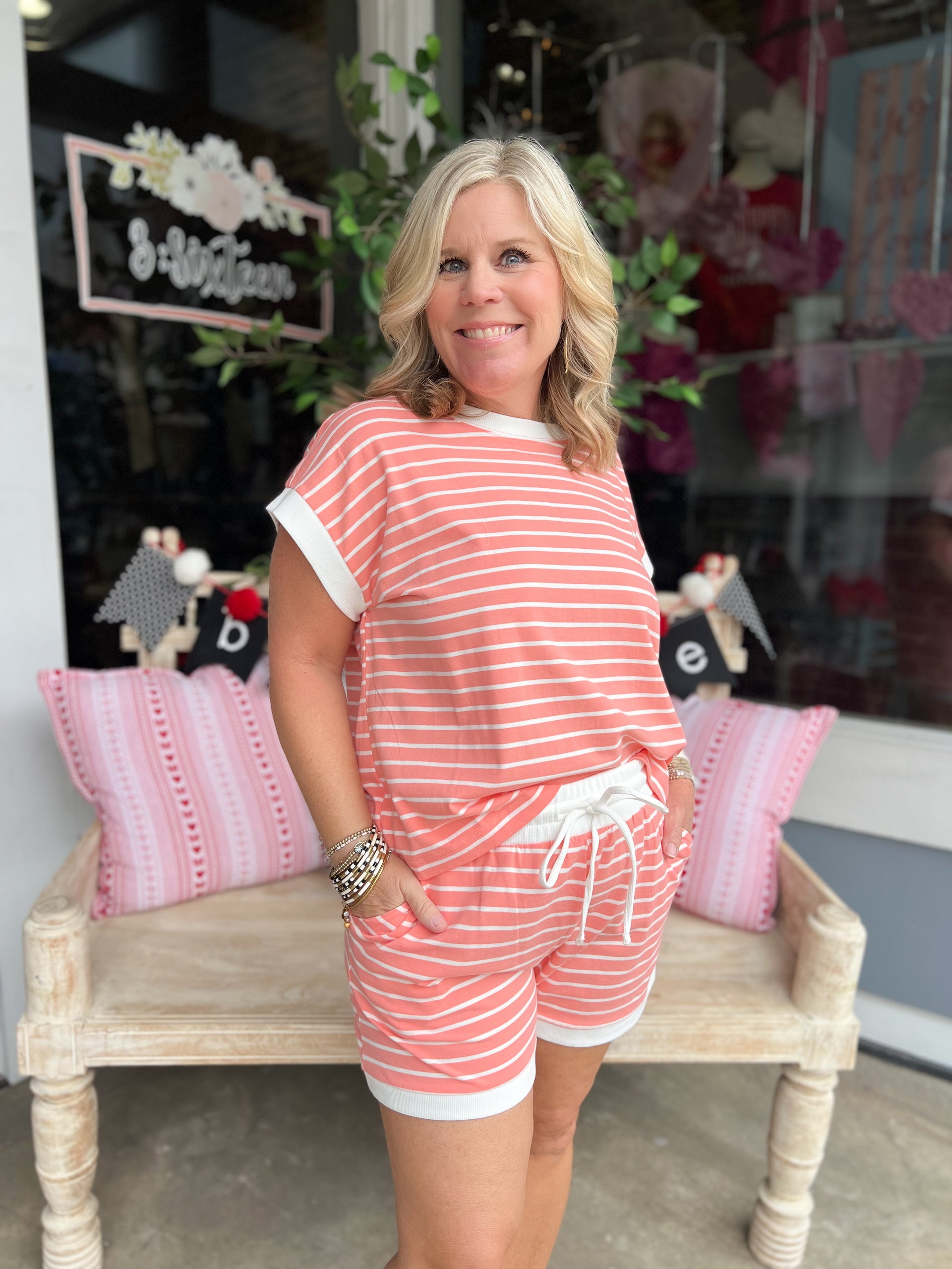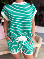 STRIPE CONTRAST TRIM TOP & SHORTS SET