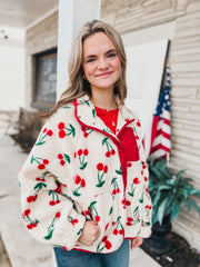 Cherry Printed Fleece Sherpa Jacket
