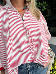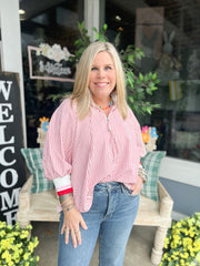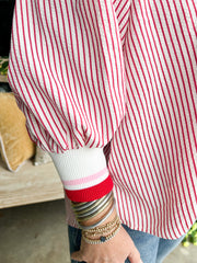 Red Striped Half Zip Top