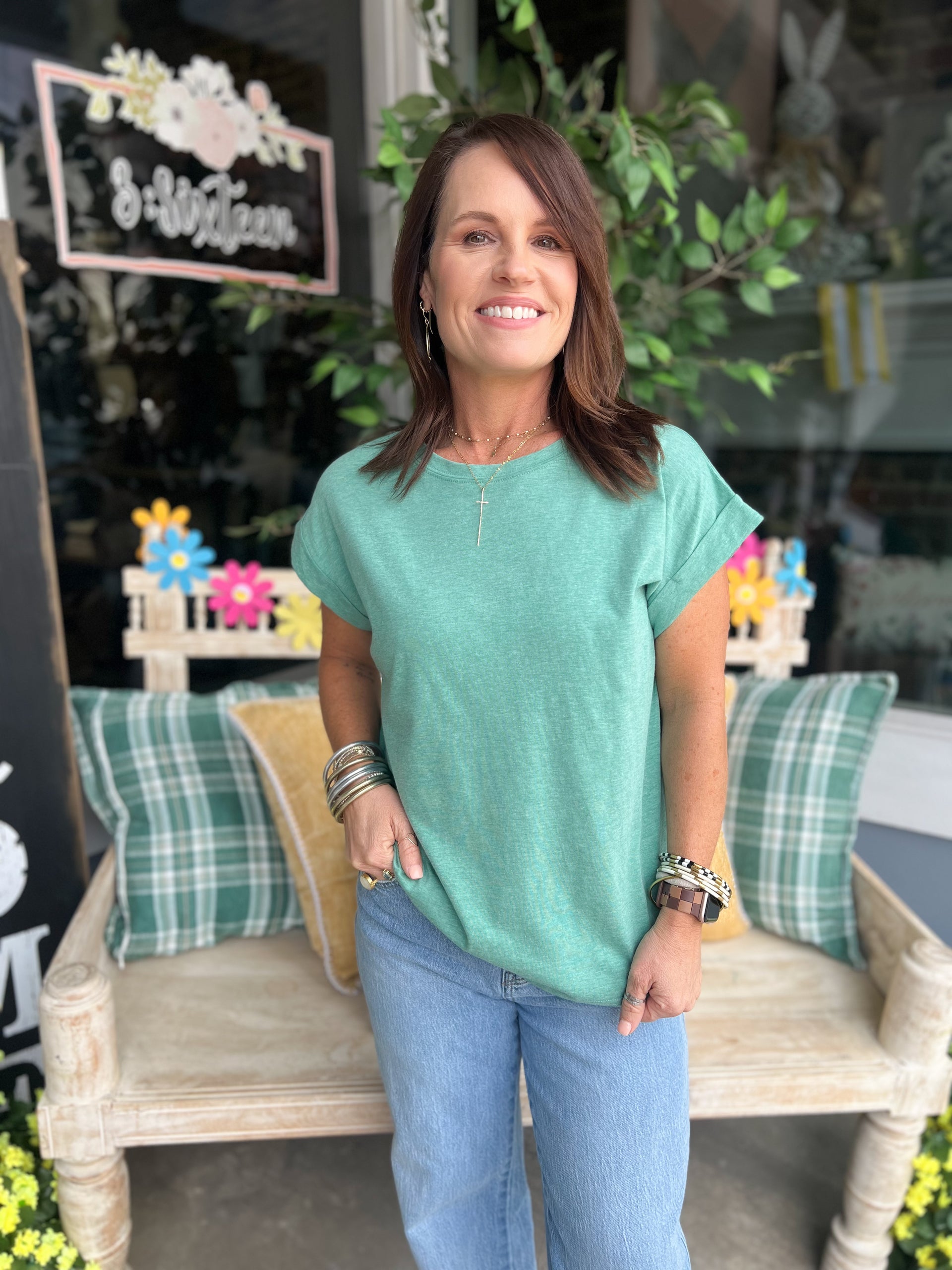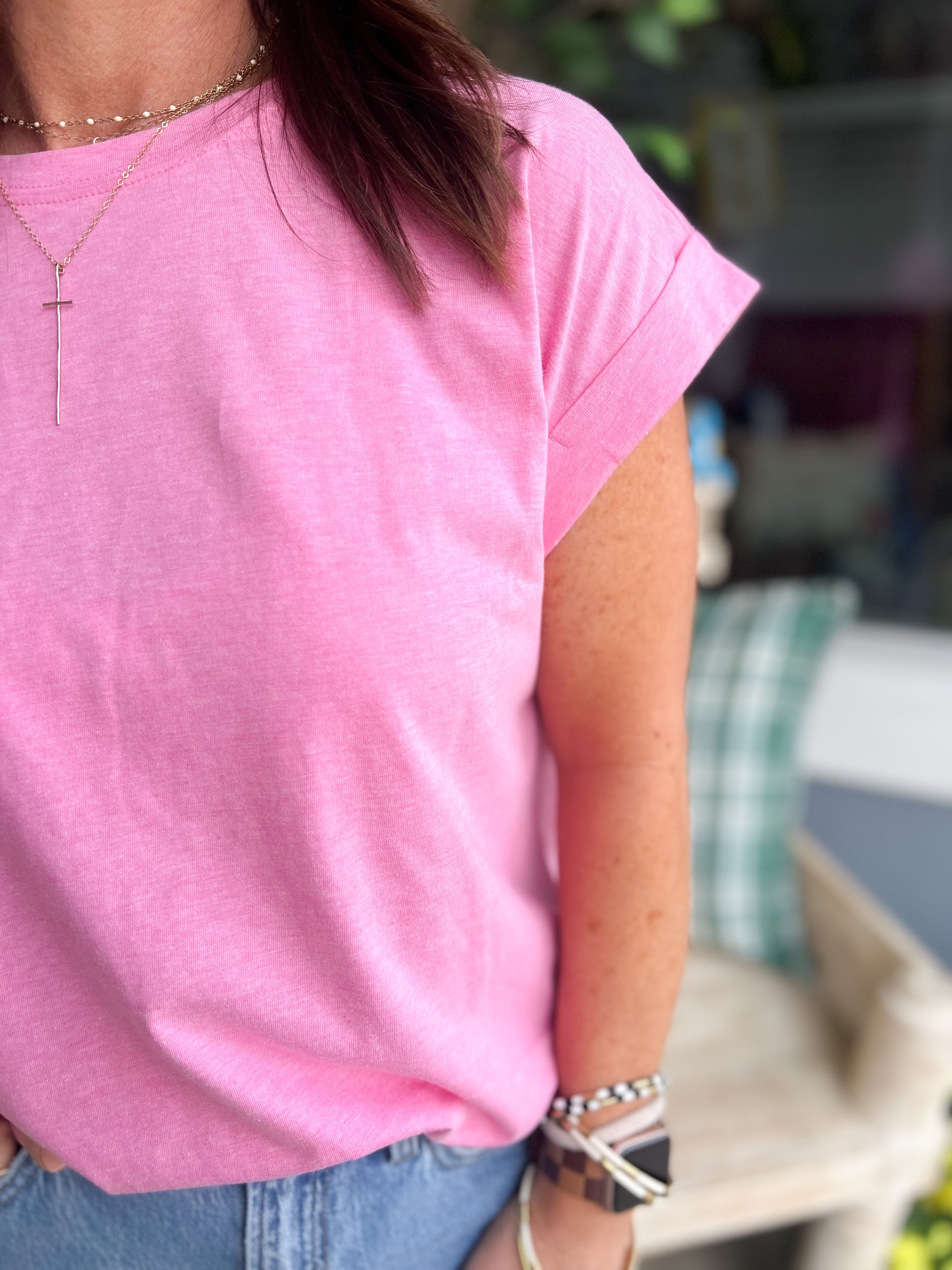 Elevate your everyday wardrobe with this versatile round neck short sleeve tee. Crafted with a refined folded neckline that adds subtle sophistication, this essential piece transitions seamlessly from casual outings to relaxed layering. The classic silhouette and quality construction make it a reliable go-to for any season. Perfect on its own or paired with your favorite bottoms and accessories, this timeless tee delivers comfort and style that works as hard as you do.