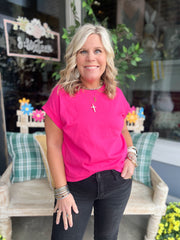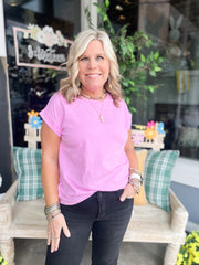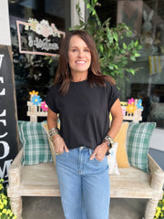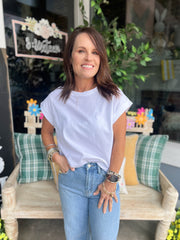 ROUND NECK FOLDED SHORT SLEEVE T-SHIRT