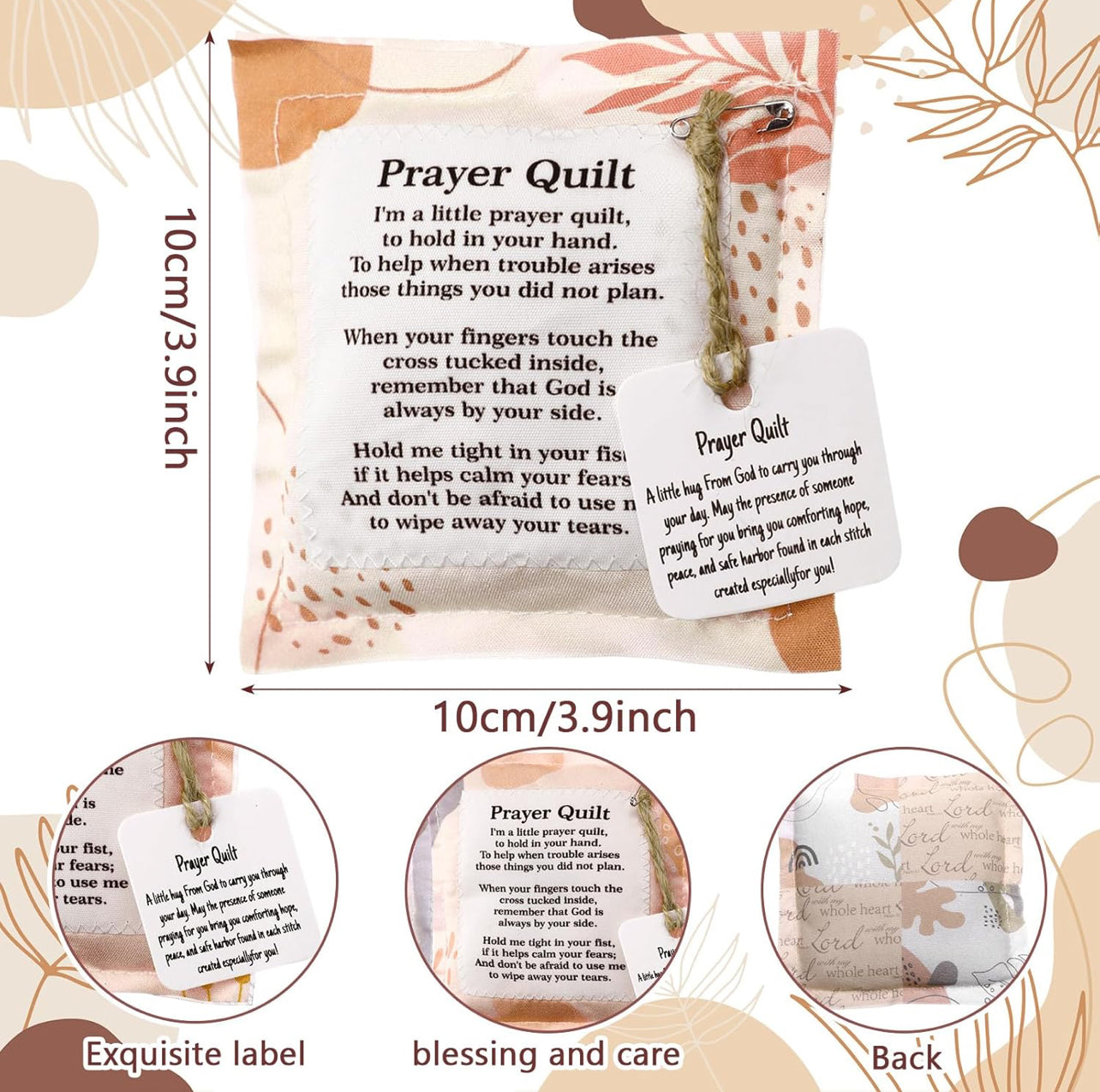 4"x4" Prayer Quilt Square with wooden cross inside.