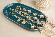 Brilliant Bond – Statement Chain Bracelets with Reflective Crystals: 4 golden charms and 1 Radiant cut Crystal
