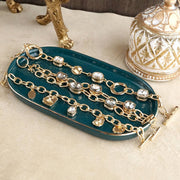Brilliant Bond – Statement Chain Bracelets with Reflective Crystals Bold, brilliant, and ready to shine — these statement chain bracelets feature high-reflective faceted crystals that catch every flicker of light. Each style offers a fresh take on classic chain design, mixing golden textures and double-sided crystal charms for a touch of glam that feels at once modern and timeless. From layered strands to chunky beads and organic coin details, each piece is designed to stand alone or stack beautifully with your other favorites. DETAILS: * Statement bracelets in shiny gold tone * Super reflective, double-sided faceted crystal charms * Variety of styles to mix, match, and layer * Toggle closures for adjustable fit on chain styles * Available styles: • Stretchy bracelet textured golden ball beads with clear teardrop crystal and golden organic coin • Multi charm chain with 4 golden charms + radiant cut clear crystal charm — 8"/8.5" - Available with: Gold tone chain, or with - Silver tone chain • Thre
