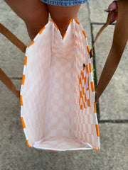 19.5"x13.5"x7" Orange and White Checkered Tote