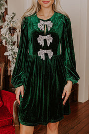 Evergreen Bowknot Decor High Waist Velvet Mini Dress