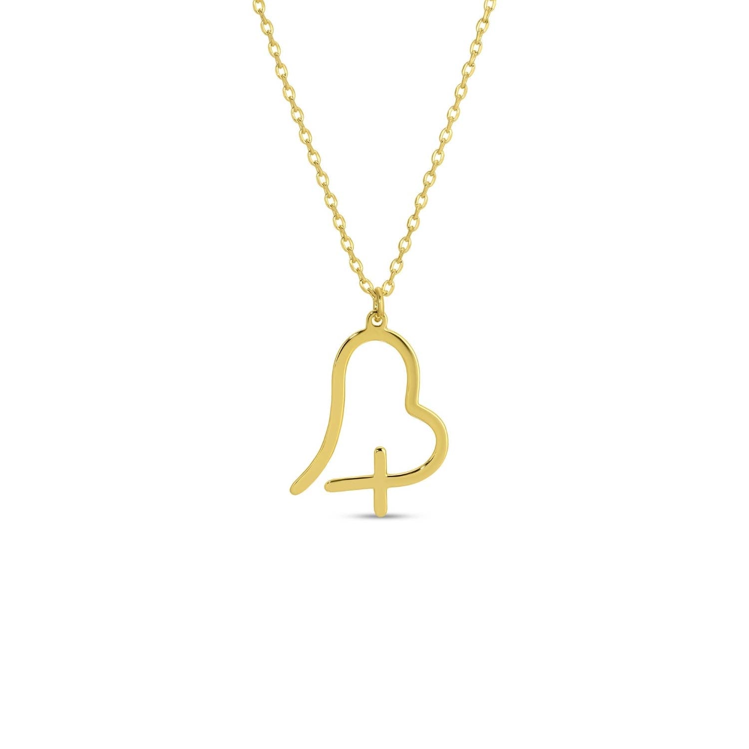 Discover the timeless beauty of our Free Form Heart with Cross Necklace - a minimalist piece that combines delicate design with spiritual symbolism.