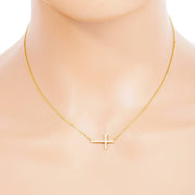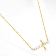Elegant sideways cross pendant necklace with delicate chain and sparkling accents. Perfect for everyday wear or as a meaningful gift, this timeless piece blends minimalist design with spiritual symbolism.