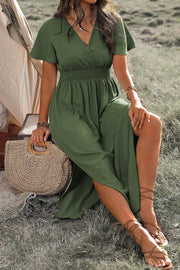 PLUS SIZE Green Surplice Neckline Smocked High Waist Maxi Dress
