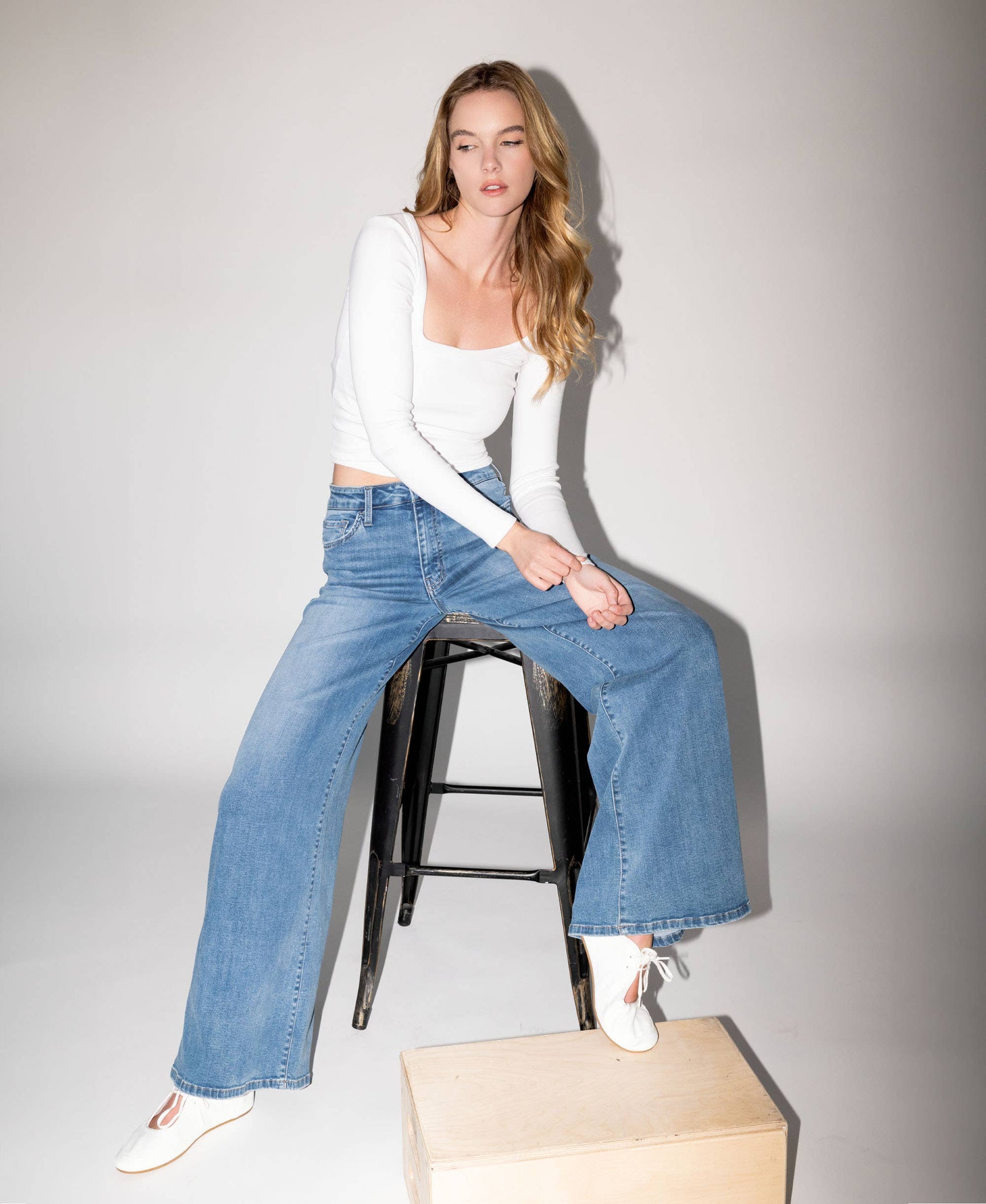 Step into comfort and style with our HR Full Length Palazzo Jeans. Crafted from stretch denim, these high-rise jeans hug your waist while offering a breezy, full-length palazzo silhouette. The finished hem adds a polished touch, making them perfect for playful days and relaxed evenings alike. Embrace effortless chic with every step!