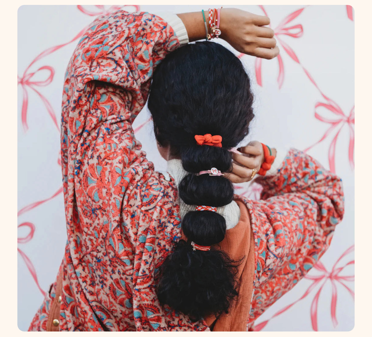 Introducing Joy – the perfect holiday hair tie bracelet ! With festive colors and a subtle sparkle, Joy seamlessly transitions from wrist to hair, and into the next seasons with just a subtle touch of holiday magic. Whether you're dressing up for a seasonal celebration or keeping it casual, Joy brings both charm and function to any outfit.