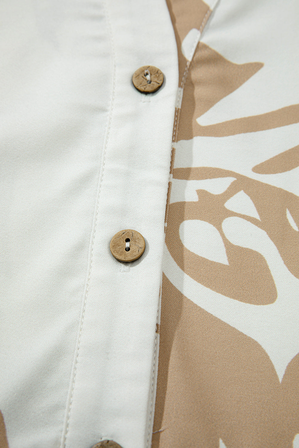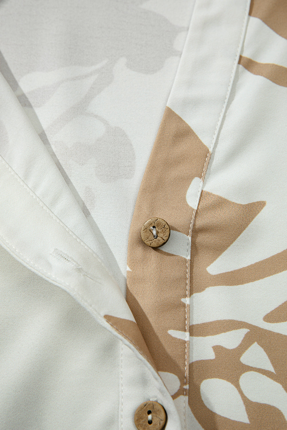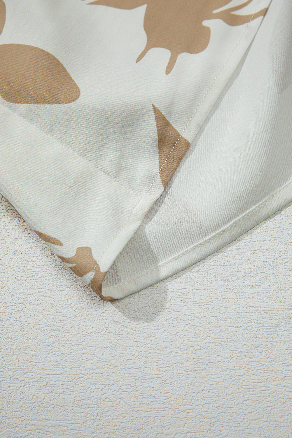 PLUS SIZE Khaki Abstract Print Ruffle Sleeve Tiered A-line Long Dress