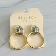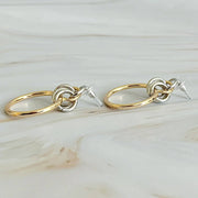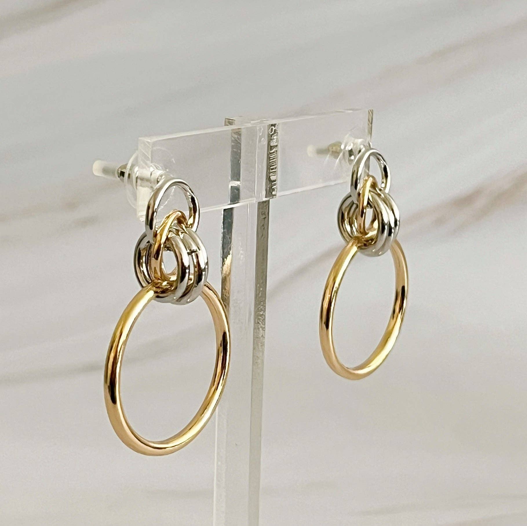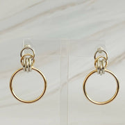 These beautiful and unique hoop earrings, adorned with both gold and silver accents, will elevate any outfit. The perfect statement piece for any occasion, these earrings exude style and sophistication. The intricate design will surely turn heads and add a touch of elegance to your look. Dimensions: approximately 1.2" x 1.4" Plated alloy metal Lead and Nickel compliant Made in China