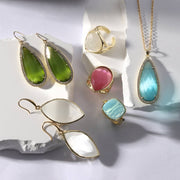 This statement ring showcases a curvy square stone with a feline-vibe cat's eye sparkle and sweet cubic zirconia accents on either end. There's just something about a bold ring that screams, "Ms. Reliability!"
