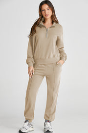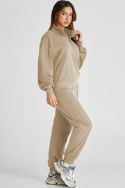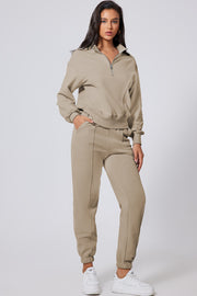 Parchment Half Zip up Pullover Active Top and Joggers Set