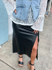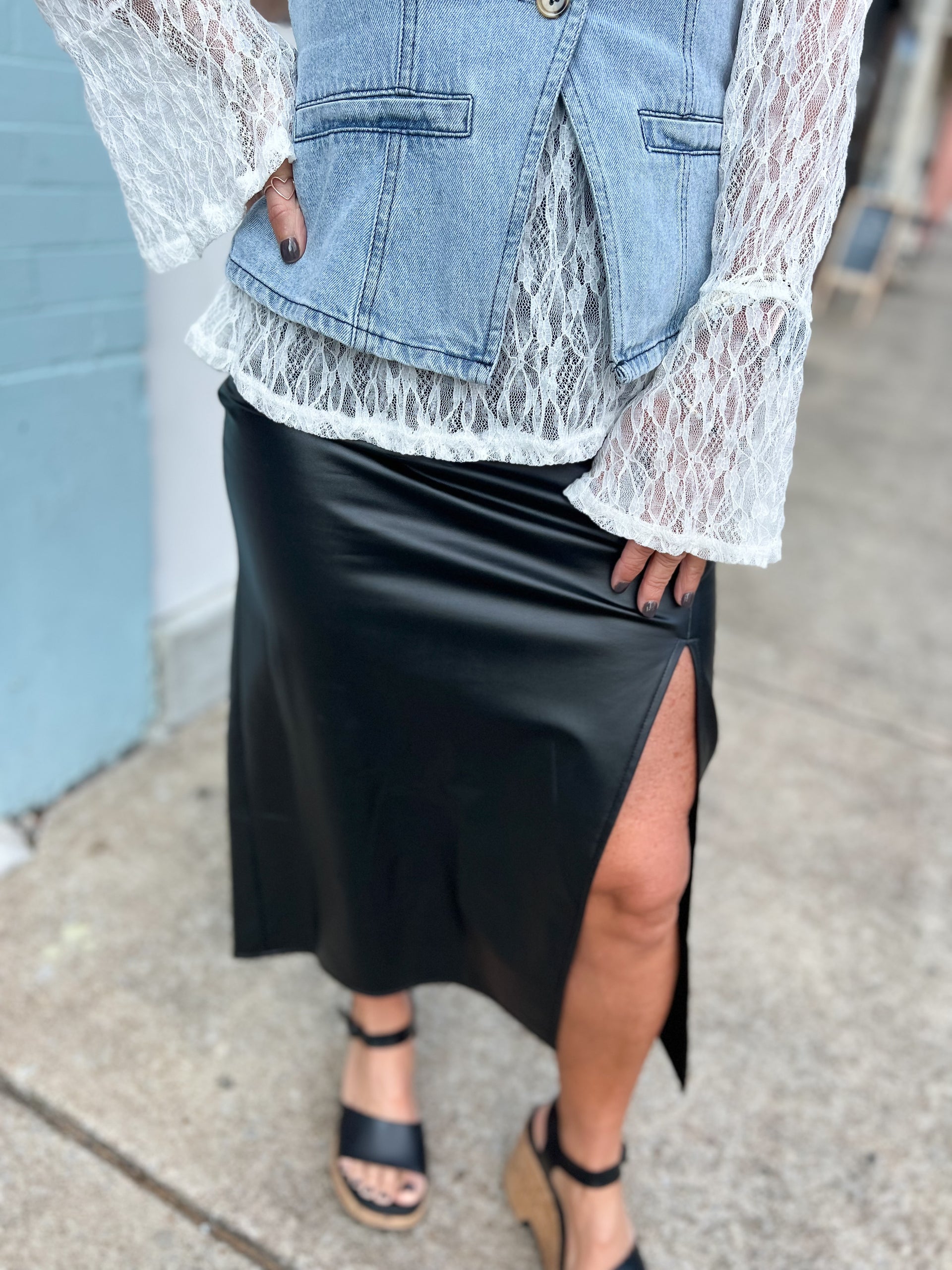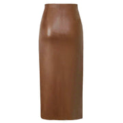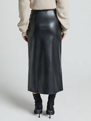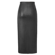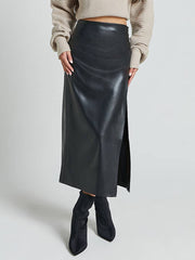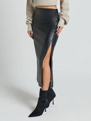 PU SPLIT LEATHER SKIRT HIGH WAIST ZIPPER SKIRT 95% PU, 5% SPANDEX