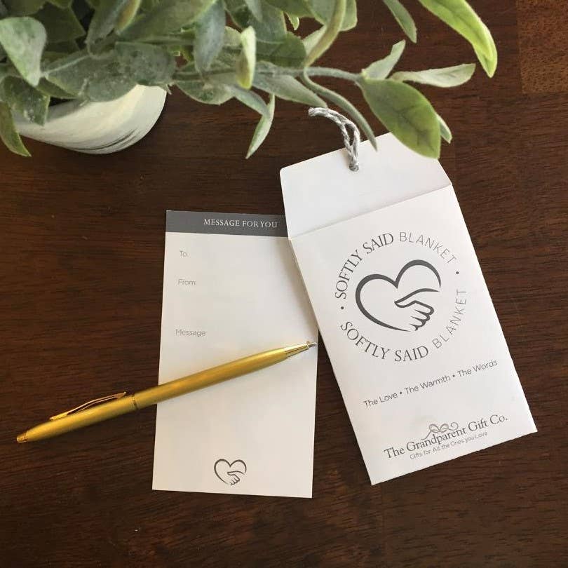 Our "Softly Said" Praying for You, comfort blanket measures 50"x65" and is overflowing with warmth and comfort. The faux fur and micro mink gray-toned blanket is an absolute gift for mind, body, and soul. A thoughtful message is embossed on a faux leather label and sewn on the blanket for the recipient to remember your message each time it is used. The gift is packaged with a large grosgrain ribbon and gift tag. The gift tag includes a card to share a personal message. This is a beautiful and thoughtful gift to let a friend of family member that they are always on your mind. A perfect size to use on a bed or couch to cuddle or use when reading, watching TV or sleeping. Neutral colors suit many home decor styles and are an appreciated gift for older child, women, or men. 100% polyester, warm water wash, tumble dry low, no iron or bleach.
