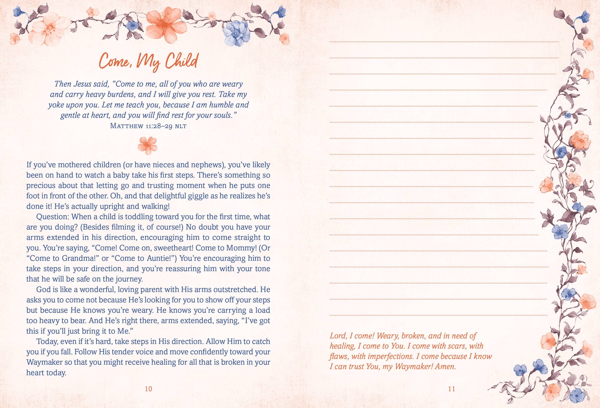Your Father is a Waymaker God—the ultimate Navigator who makes a way, even when a situation seems impossible. But no mountain is too high. No valley is too deep. No scenario is too difficult for Him to overcome. This powerful devotional journal written for women going through seasons of brokenness and disappointment and offers biblical encouragement on topics like