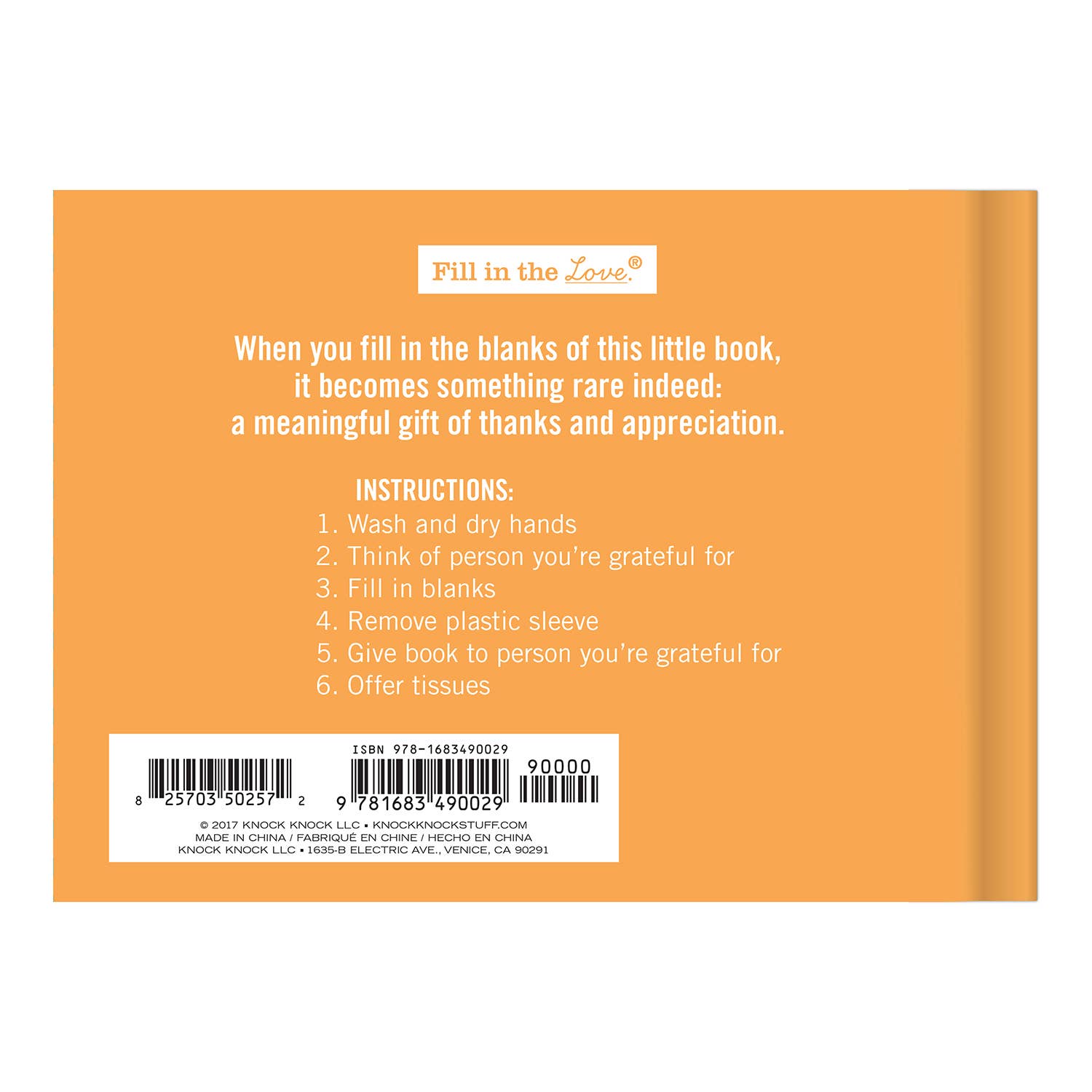 Simply fill in the blanks of this diminutive volume and voila: it becomes a personalized gift someone you're thankful for will read again and again. Make it as appreciative, affirming, or adorable as you please!
